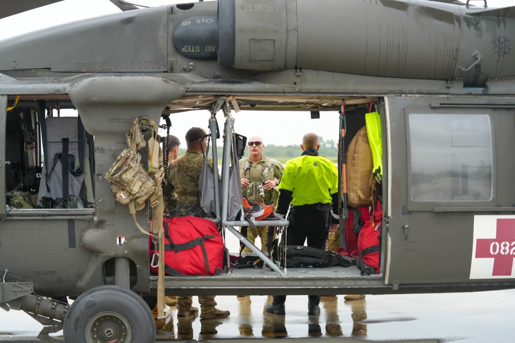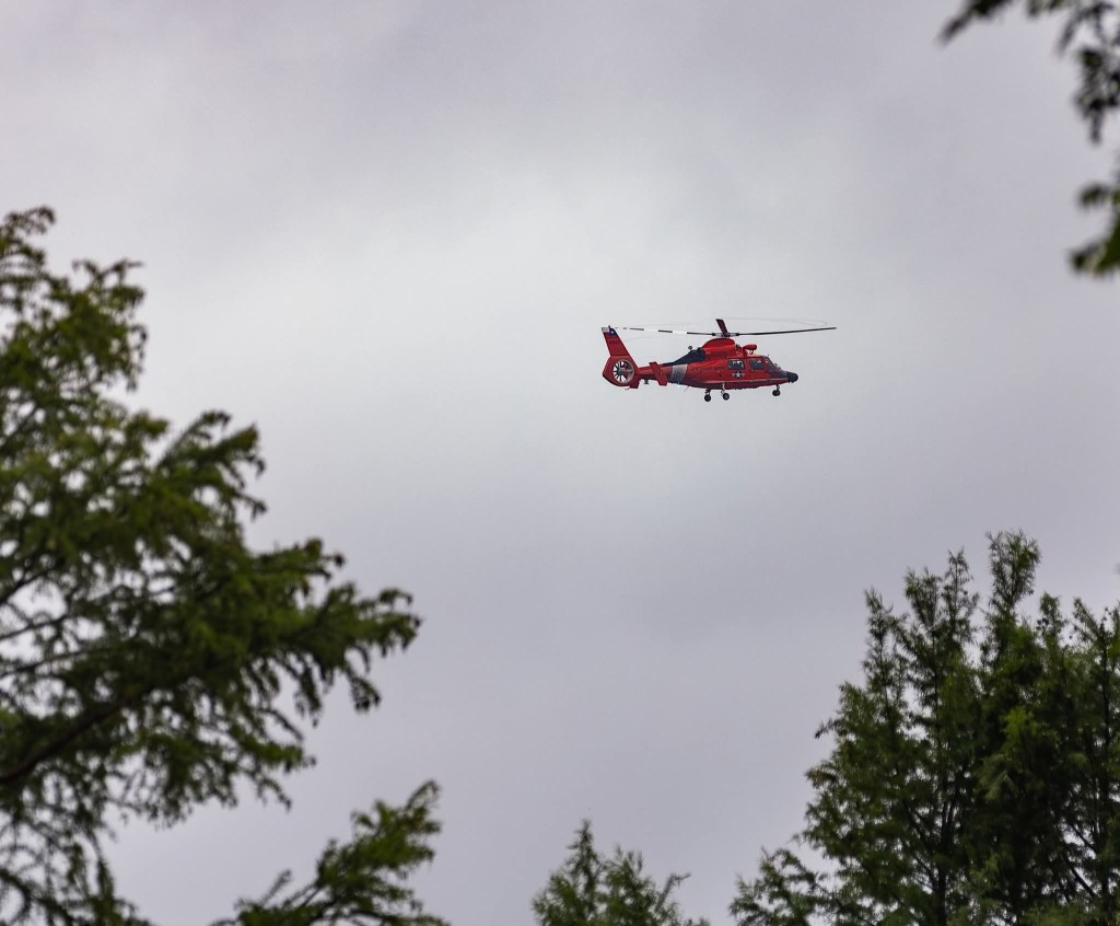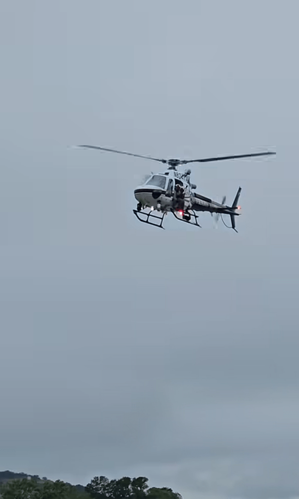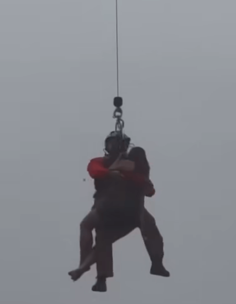 Unable to use boats and floats due to the raging waters, rescuers took to the skies with helicopters.