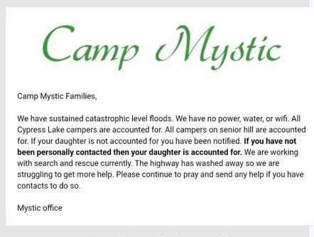 Then we learned about numerous casualties and missing people, including girls ages 7 to 17 at Camp Mystic for the week: