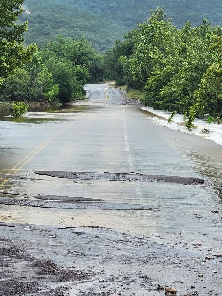 Highway 337 (many motorcyclists know it as the first leg of famous ‘Twisted Sisters’ biker trail or the gateway to Lost Maples State Park), was blocked off as the river was flowing over two feet above the bridge.
