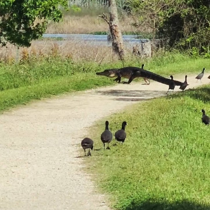 When we lived in South Dakota, Dad used to come home from surveying with stories about rattlers like that, and the rattles. We have timber rattlers up here, but I’ve never seen one. And no alligators! Yuck. We have no dolphins; that’s so neat. But everything else? We live with them all. You can’t scare me, except for the snakes, shudder. But just imagine all those uninitiated types seeing their first snake lying in the puckerbrush on their first hikes into the glorious wilderness.