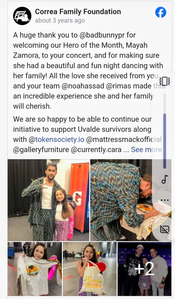 Not only did Bad Bunny help finance the new Zamora house, he hosted the family to an executive suite at his Arlington, Texas concert that September. He then followed up by inviting even more Robb Elementary victims family to a suite at a San Antonio concert.