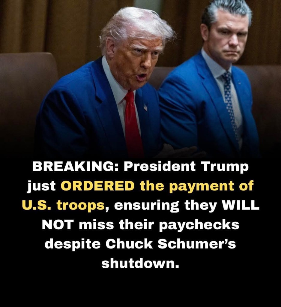 “I am using my authority, as Commander in Chief, to direct our Secretary of War, Pete Hegseth, to use all available funds to get our Troops PAID on October 15th,” President Donald J. Trump announced Saturday morning.