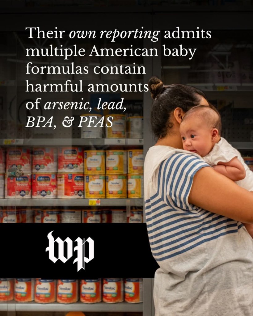 The Washington Post, with their own reporting admits multiple American baby formulas contain harmful amounts of arsenic, lead, BPA, and PFAS.