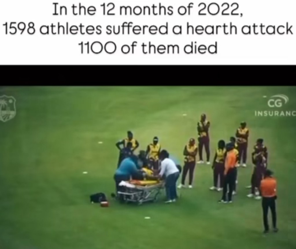 In the 12 months of 2022, 1598 athletes suffered heart attacks. 1100 of them died.