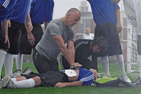 Team trainers and emergency medical staff performed CPR for more than nine minutes, which saved his life.