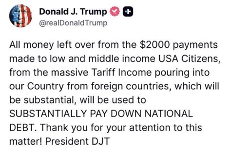 Let’s discuss the exact words President Donald J. Trump used. Early on, in his second term, he talked about the $2,000 for low-income and middle-income citizens.