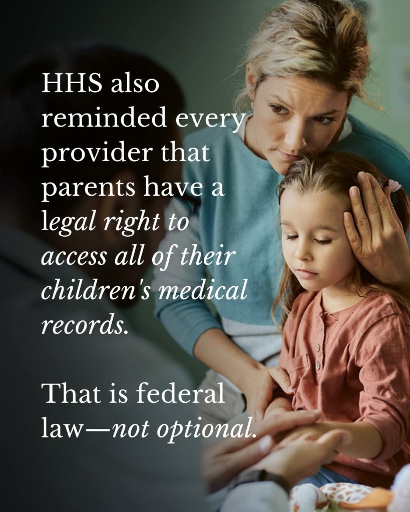 HHS also reminded every provider that parents have a legal right to see all of their childrenās medical information. That is federal law.