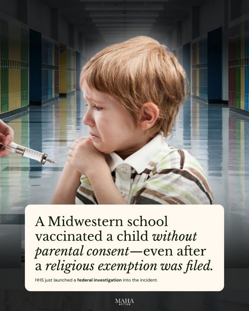 A Midwestern school allegedly vaccinated a child without parental consent after the family filed a religious exemption.
