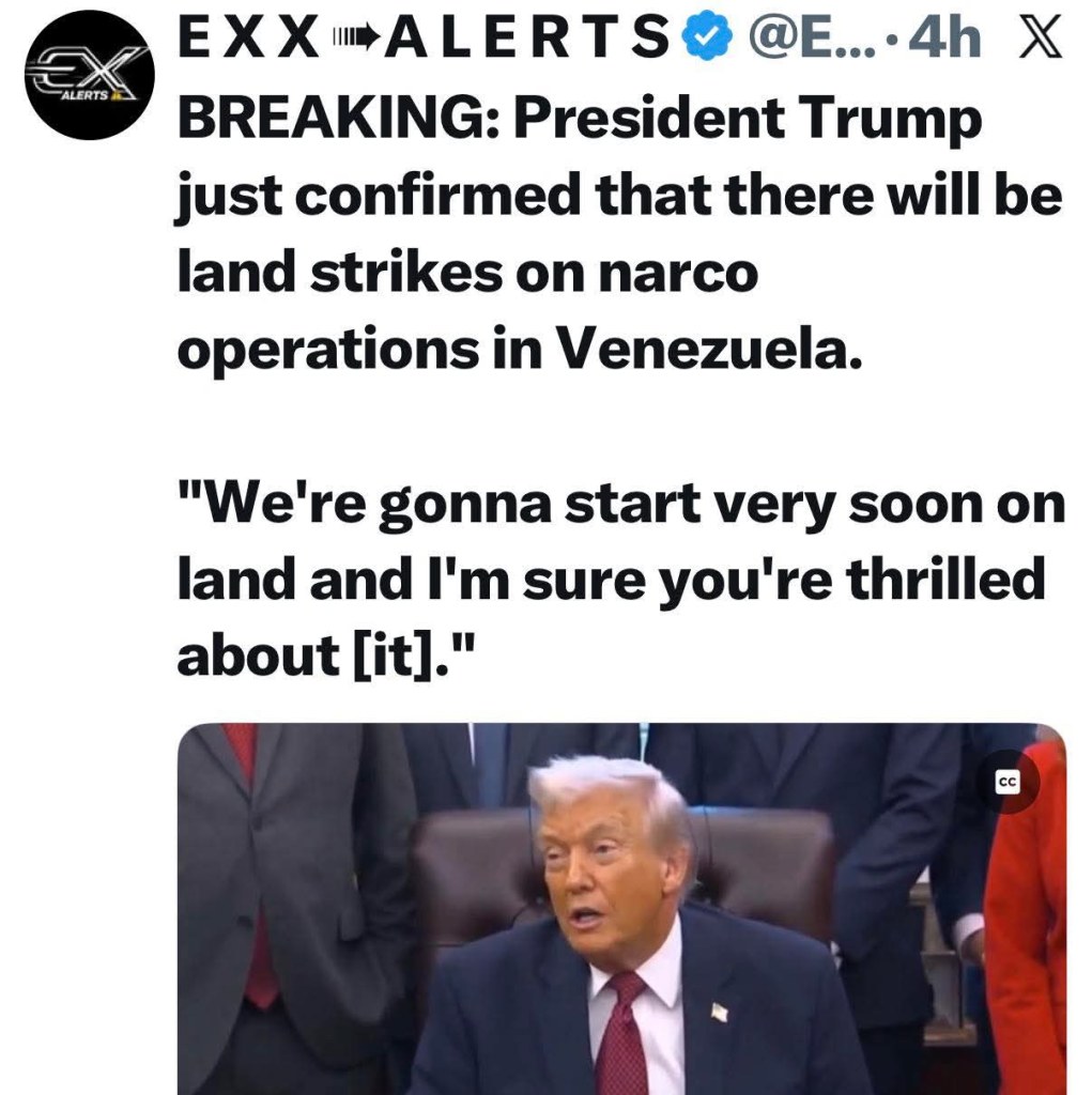 “The purpose of this organization, now known as the Cartel of the Suns is to weaponize drugs against the US. The drugs that reached your cities through new routes were not accidents of corruption nor just the work of independent traffickers; they were deliberate policies coordinated by the Venezuelan regime against the US.”