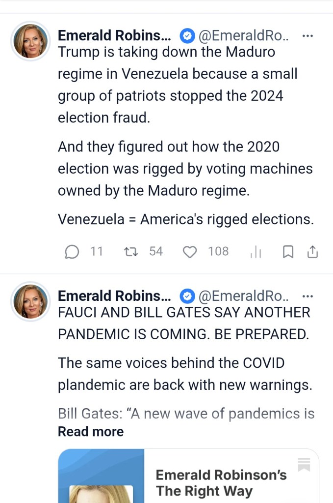 Because of her bravery and investigative skills, Emerald also has the #1 Conservative Substack, titled The Right Way. And even the Washington Post calls Emerald a Top 10 Influencer on Twitter.