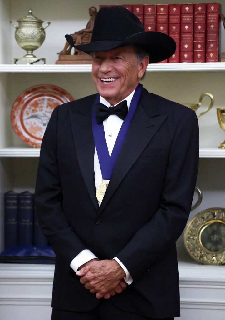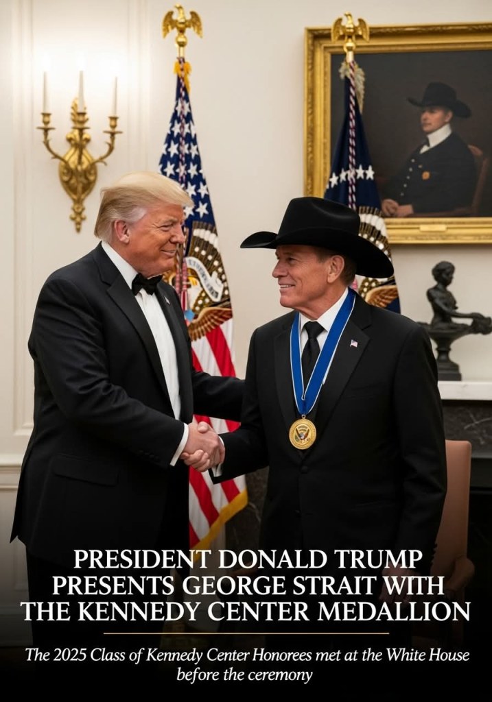 On December 6th, 2025 President Donald J. Trump presented a Kennedy Center Honors medallion to country music singer George Strait.