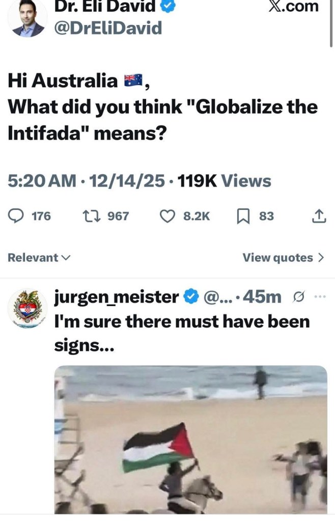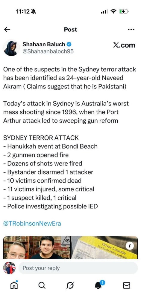 • Australia’s Prime Minister Anthony Albanese describes the attack as “an act of evil antisemitism, terrorism that has struck the heart of our nation.”