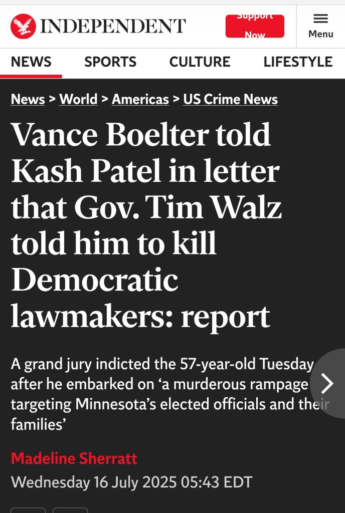 In his letter to the FBI, Vance Boelter, Hortman’s alleged killer, claimed Walz had instructed him to kill Sen. Amy Klobuchar because he wanted her Senate seat.