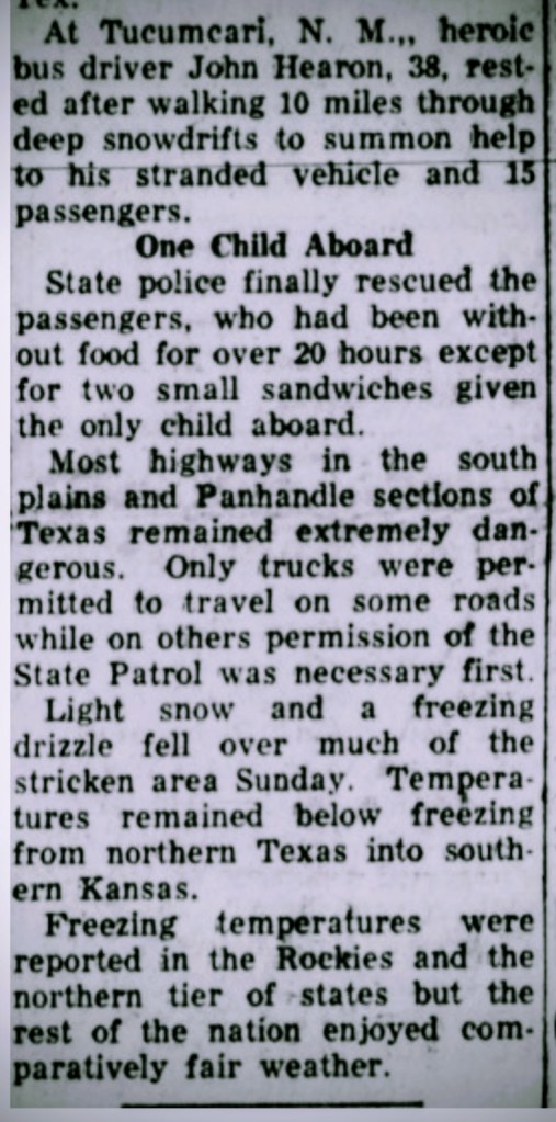 John himself suffered from exposure, exhaustion, and snow blindness. He spent time in a Tucumcari hospital recovering, and when newspapers got wind of what he’d done, they called him a hero — the man who walked through hell and snow to save his passengers.