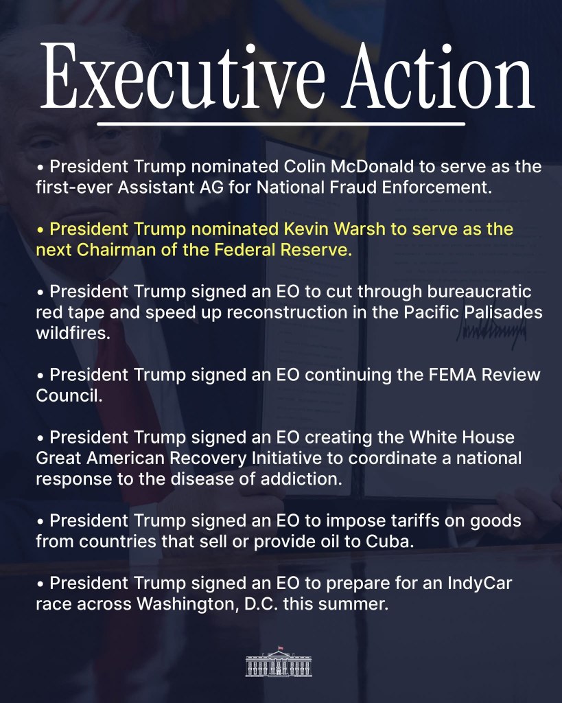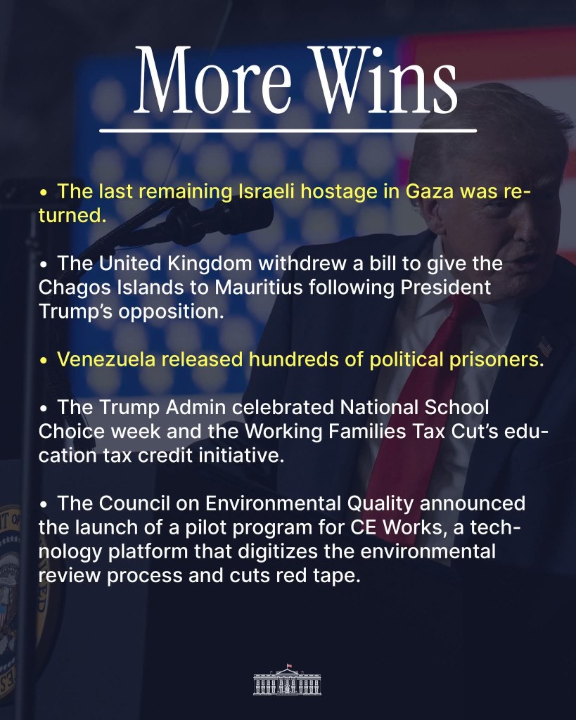 As we close out the last week of January the White House announced even more “winning.”