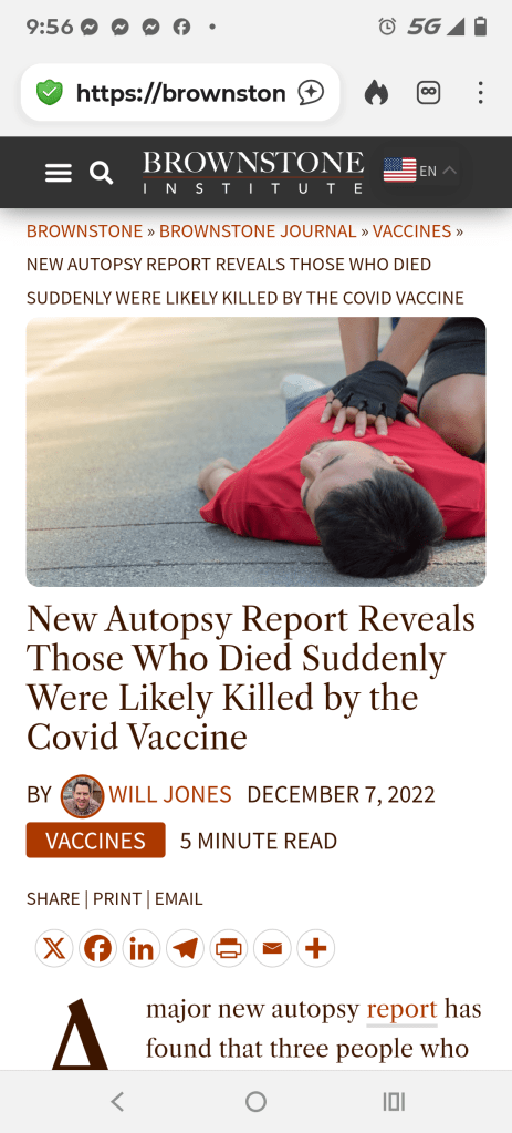 “Have you noticed the correlation of people who are now dead that had announced on their profile that ‘I Got My COVID-19 Booster’ on their Facebook page?,” a friend asked a group of us as we sat for lunch together at a restaurant in Bandera, Texas.