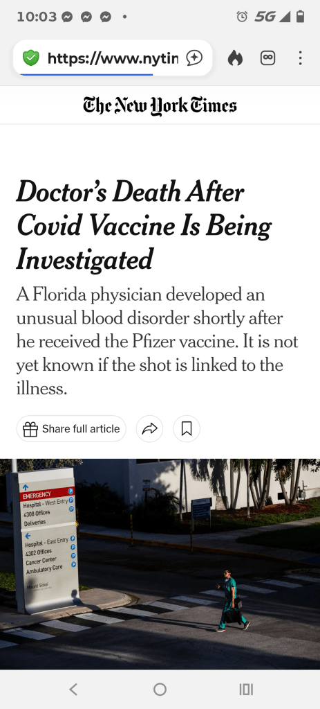 Basically, do not consider the usual propaganda suspects of mainstream media. A deeper dive in news reports reveals far too many serious cases of death and illnesses after jabs.