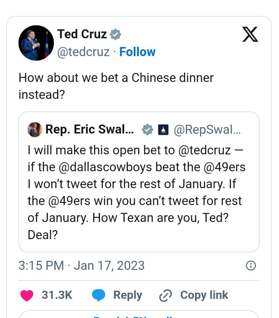 Powell doubled down with receipts. They showed Swalwell posting videos from the Rose Hotel in Pleasanton during a government shutdown. This is hardly the picture of a committed Californian.