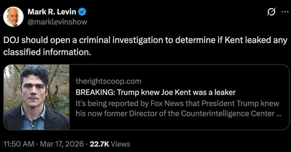 One specific claim is that Kent leaked details of a private meeting. This meeting was between President Trump and Mark Levin. Figures like Buzz Patterson and others on X circulated this claim. It was alleged that Tucker Carlson received the leaked details. He admitted to it after being confronted. He was warned that further leaks would lead to firing.