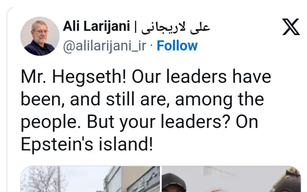 “The fate of dear Iran … will be determined solely by the proud Iranian nation, not by Epstein’s gang,” Ghalibaf wrote on X.