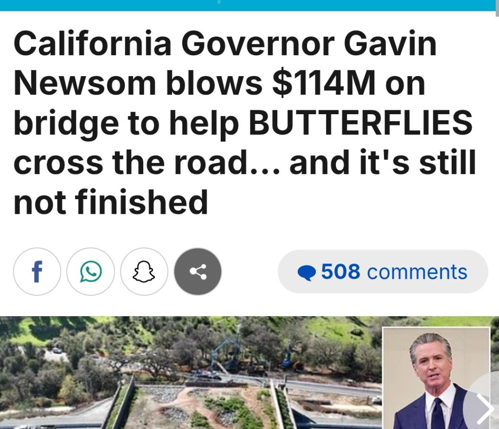 California taxpayers under Gov. Gavin Newsom are getting fleeced again. This time it’s for a lavish wildlife overpass that’s ballooned to $114 million. Meanwhile, the state stares down a $2.9 billion budget deficit.