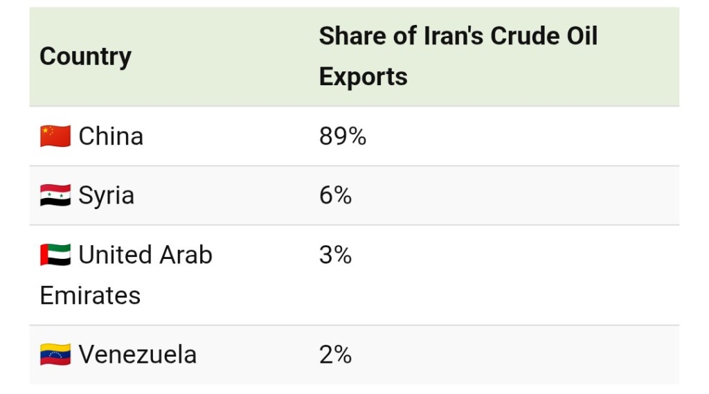 In 2023, a staggering 89% of Iran’s oil exports went to China, a sharp rise from just 25% in 2017.