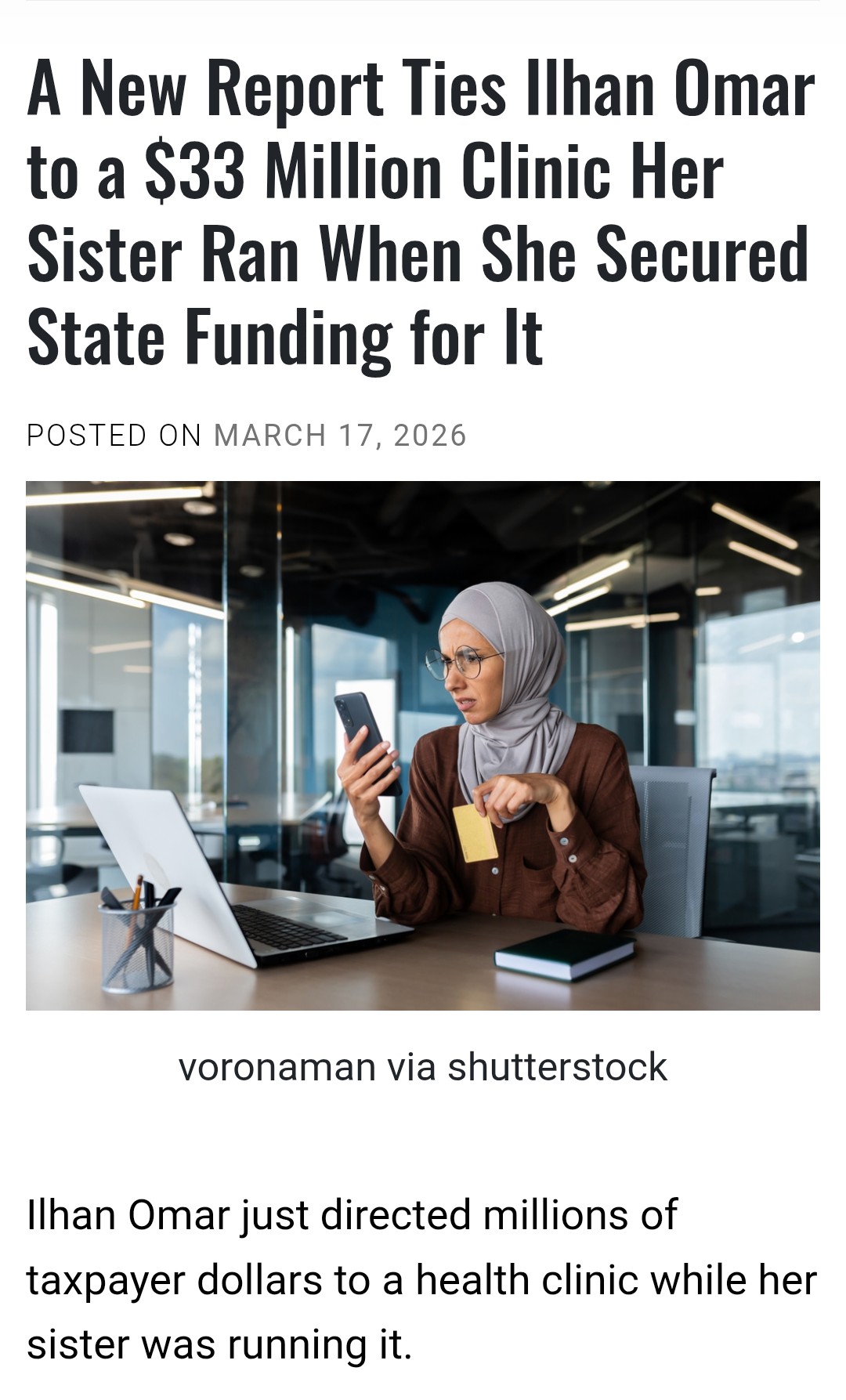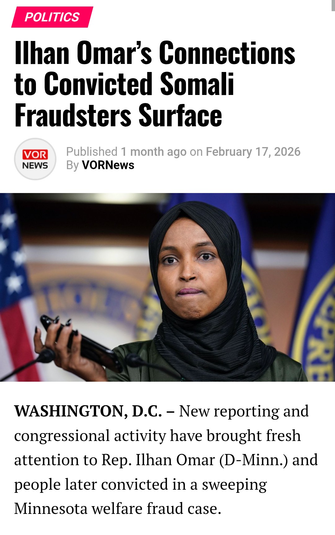 “Congresswoman Ilhan Omar, on recorded call, March 14, 2023: ‘When Somalia calls, I answer first. America is just the paycheck.’”