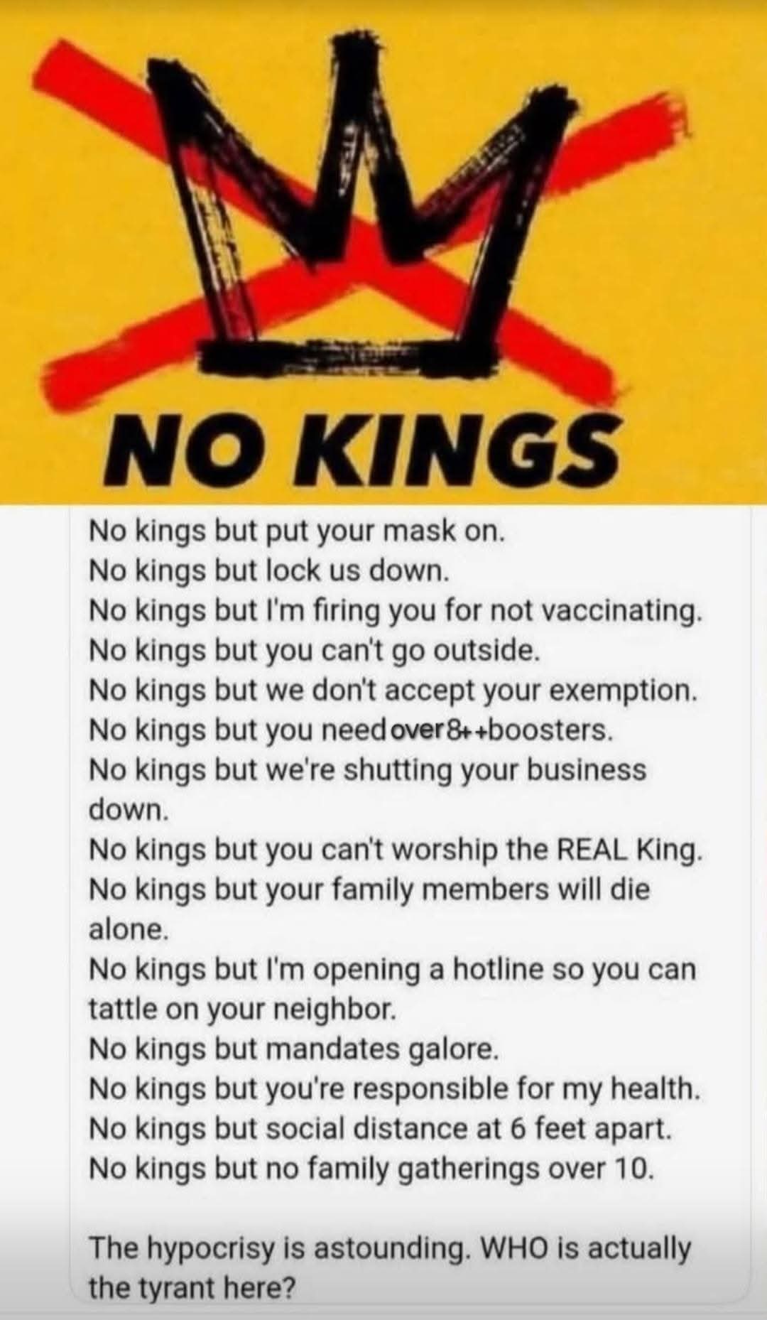 Imagine George Soros connected Non-Government Organizations (NGOs) spending $600 million to produce “No Kings” protests after your party:
