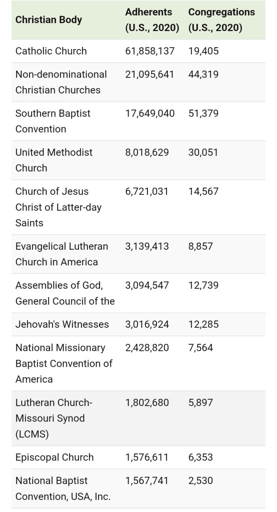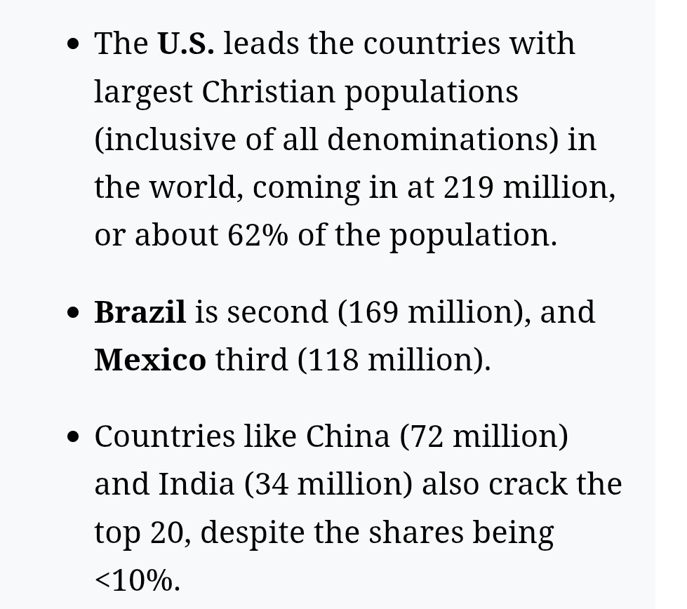 United States Leads All Nations in Christian Populations