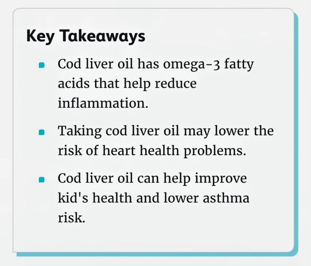 Additionally, in a group of pregnant people with gestational diabetes, supplementation with cod liver oil reduced several markers of inflammation, including cytokines and insulin resistance.